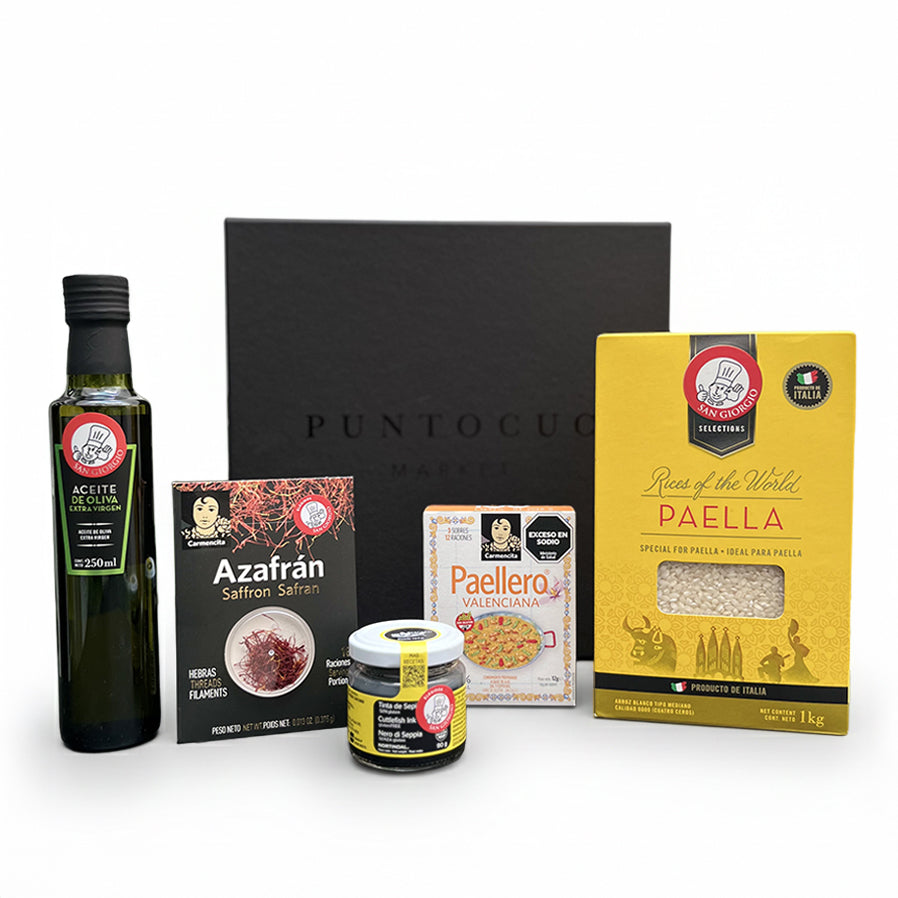 El sabor original de la Paella Valenciana puede lograrse de manera rápida y efectiva solamente con la mezcla tradicional de especias con azafrán. Con sal, ajo deshidratado, pimentón dulce, pimienta negra, romero, tomillo, clavo de olor y el característico azafrán español, este sobre te asegurará el éxito de tu paella valenciana.